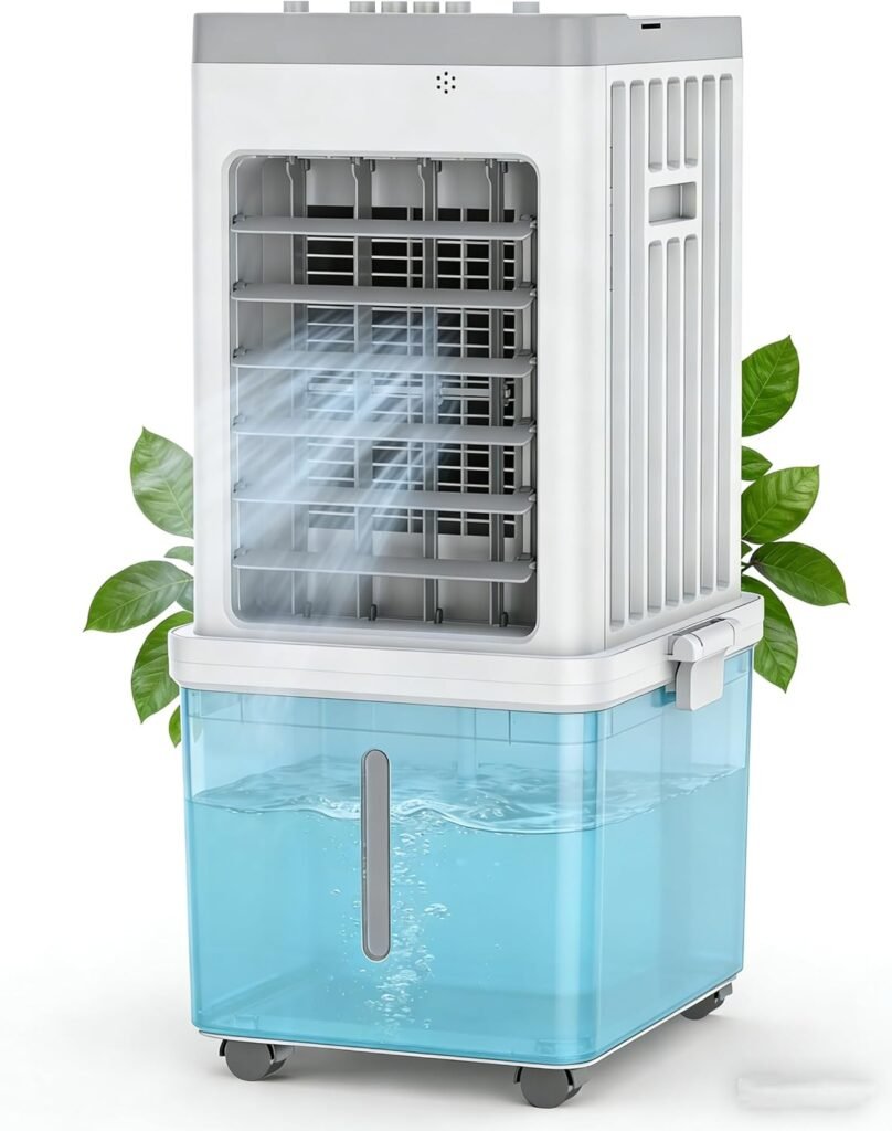12L Portable Air Cooler Fan – Quiet Evaporative Air Conditioner with 3 Speeds, 120° Oscillation, Low Energy Cooling, Wheels for Easy Movement, Ideal for Home, Office & Bedroom