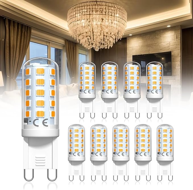 9 LED Light Bulbs 4W Amber Warm White 2200K – Equivalent to 40-50W Halogen, Non-Dimmable, Energy Saving Bulbs for Home, Chandelier, Wall & Crystal Lamps (10-Pack, Energy Class)