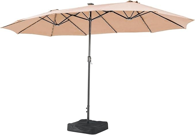 Aoxun 2.7×4.55m Garden Parasol Double-Sided Sun Umbrella for Sun Protection with Base Included and Crank Patio Outdoor Waterproof Umbrella