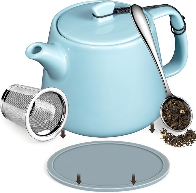 Brew To A Tea Stump Teapot Set, 600ml/20.29oz Porcelain Tea Pot Heat-Resistant with Removable Strainer,Includes Coaster & Spoon