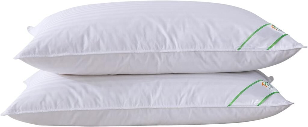 Luxury Goose Feather & Down Pillow Pair – 50% Down Filling, 100% Cotton Cover, Soft & Supportive Hotel Quality Standard Size Pillows (Pack of 2)