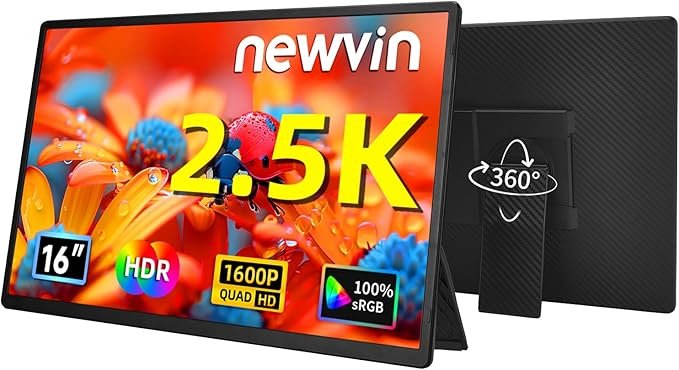 Portable Monitor 2.5K 16” HDR – Ultra-Slim Vertical USB-C HDMI External Display for Laptop, MacBook & Phone | Newwin